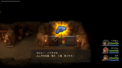 魔王像クリア後、砂漠の村(過去)貯蓄庫地下1階で、ふしぎな石板・青が入手できます。