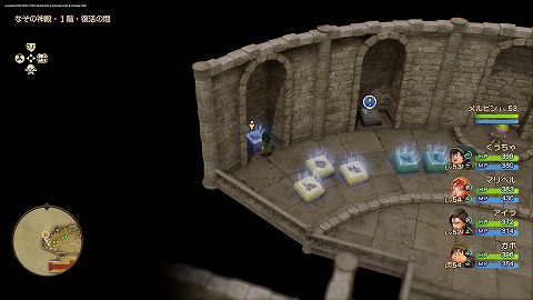 なぞの神殿1階復活の間の、1番左の灰色の石板台座を調べて、石板を完成させると、ダイアラック周辺に移動できます。