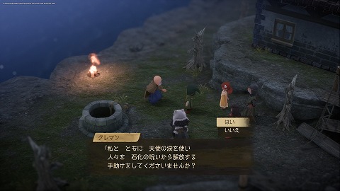 ダイアラックの町の北にいるクレマンに話しかけます。石化の呪いを解く手伝いをすることになります。