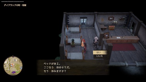 宿屋のベッドで休みます。