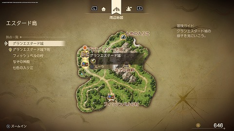 船着き場にいる老人に話しかけると、イカダに乗れるようになりました。イカダで、グランエスタード城の外観に移動します。