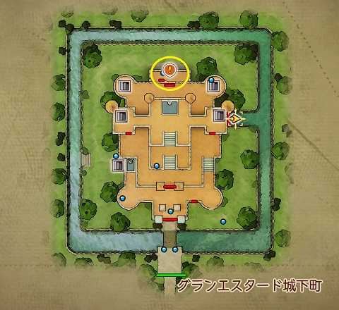 グランエスタード城の西側に上陸したら、グランエスタード城の北の扉から、グランエスタード城1階の北側に入れます。