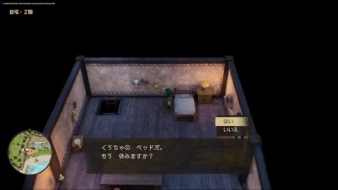 自宅1階のハシゴで2階に移動して、自宅2階のベッドで休みます。