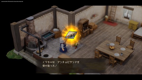 フィッシュベルの村の自宅にいるボルカノに話しかけると、ふしぎな石板・黄が受け取れます。