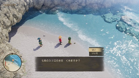七色の入り江を調べて水をくむと、水で満たされたビンが手に入りました。ホンダラに水で満たされたビンを渡します。