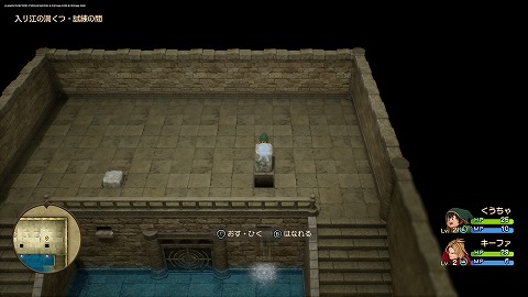 入り江の洞くつ・試練の間では、石柱を穴に落とします。2つの石柱を穴に落とすと、試練の間の水が引いて扉が開きました。