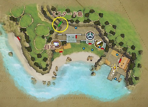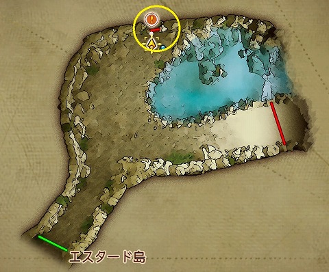 フィッシュベルの村の北西から、エスタード島のフィールドに出ます。