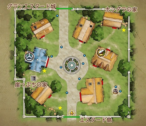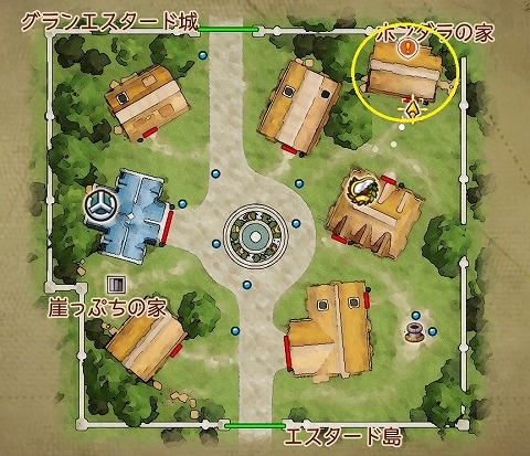 グランエスタード城下町の北東にあるホンダラの家に向かいます。ホンダラの家でホンダラに話しかけると、城下町で空のビンを集めることになりました。
