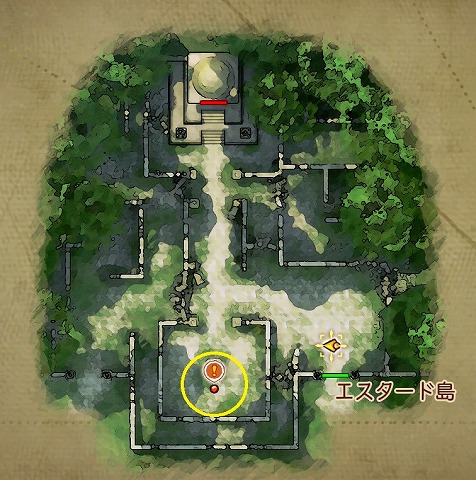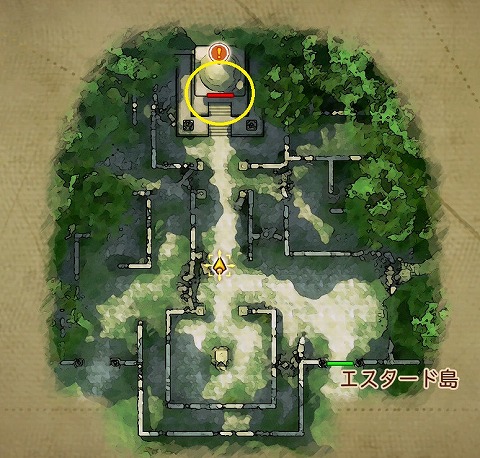 エスタード島のフィールドを東に進むと、なぞの神殿がありました。なぞの神殿に入ります。