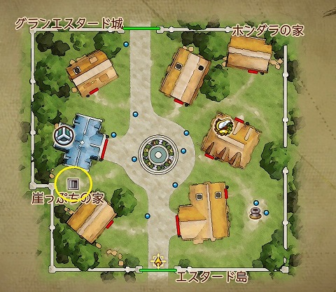 グランエスタード城下町の西の階段から地下道を通って、崖っぷちの家に移動します。