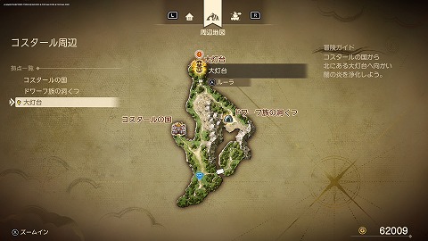 バリクナジャを倒すと、コスタールの国(過去)に戻りました。コスタールの灯台に聖なる種火を灯しました。