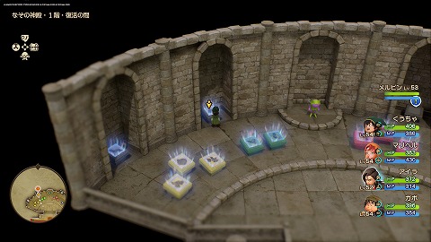 なぞの神殿1階復活の間の、左から2番目の灰色の石板台座を調べて、石板を完成させるとグリンフレーク周辺(過去)に移動できます。