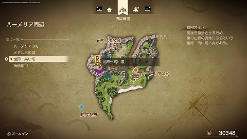 世界一高い塔は、ハーメリア周辺(現代)の西にあります。魔法のじゅうたんを使って移動しました。