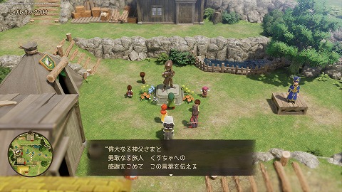 古びた石碑をレブレサックの村(過去)の村長に見せると、レブレサックの村(現代)に銅像が建てられていました。こちらがハッピーエンドですね。ガラクタ置き場のキラキラから、しんこうのたねが入手できます。