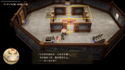 マーディラス城(過去)水の塔2階の宝箱は、像の前から十の字を描くように移動すると開きます。