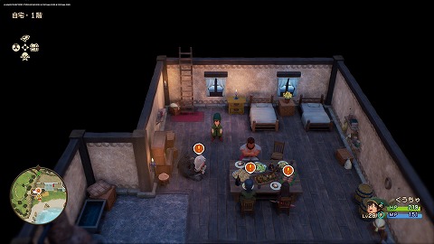 自宅のベッドで休んだら、1階に移動します。1階にいるガボ、アイラ、メルビンに話しかけます。