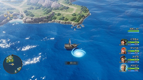 船でエスタード島の南東に向かうと、渦潮がありました。渦潮に入ると、海底王の家に移動できます。