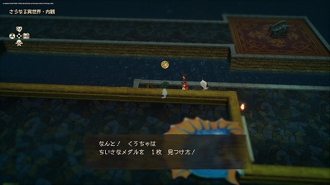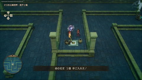 なぞの神殿地下2階の金色の石板台座を調べて、石板を完成させると、さらなる異世界に移動することができます。