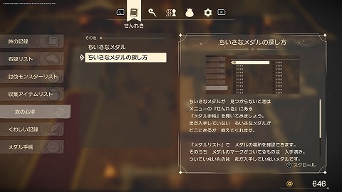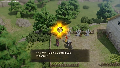 山肌の集落の西のキラキラを調べると、ちいさなメダルが入手できました。