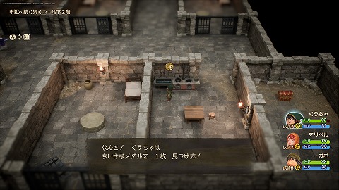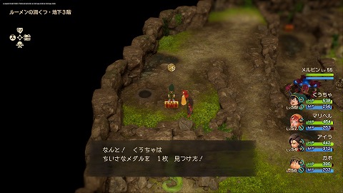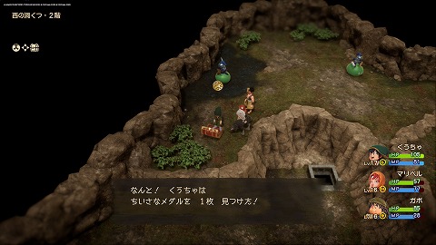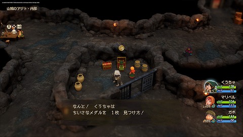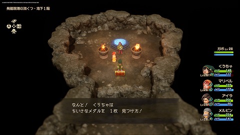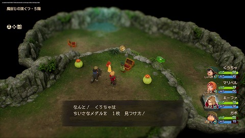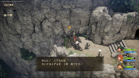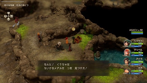 発掘現場の洞くつ地下1階の宝箱から、ちいさなメダルが入手できます。メルビン加入後に化石の発掘現場を訪れると、発掘現場の洞くつに入れました。