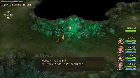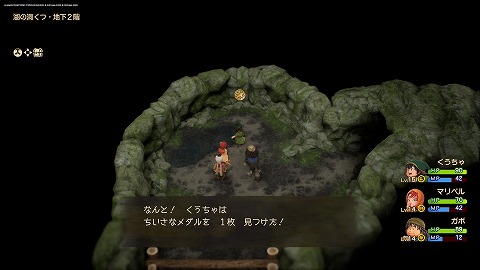 湖の洞くつ(過去)の地下2階北のキラキラから、ちいさなメダルが入手できました。地下1階南の階段から移動した先の地下2階です。