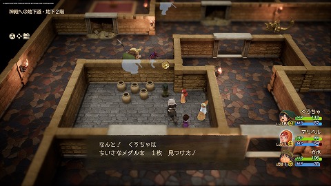 牢獄へ続く洞くつ地下2階南側の右の牢屋のツボを壊すと、ちいさなメダルが入手できました。