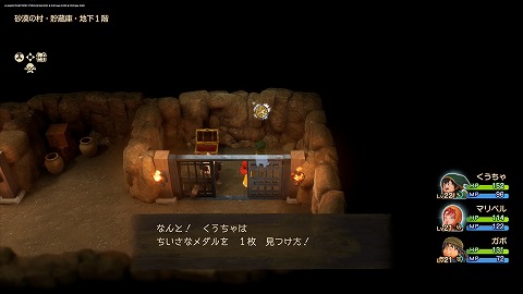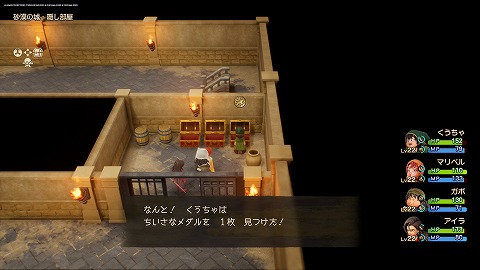 魔王像クリア後、砂漠の村(過去)の貯蓄庫地下1階のタルを壊すと、ちいさなメダルが入手できます。