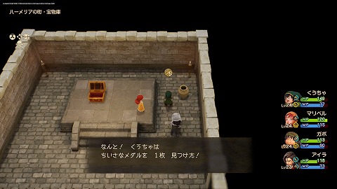ハーメリアの町(過去)の宝物庫のツボを壊すと、ちいさなメダルが入手できます。ハーメリア周辺(過去)のボスを討伐すると、宝物庫の中に入れます。イカダで水路を西に進んで、酒場の下から宝物庫に向かいます。