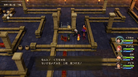 世界一高い塔7階(南西ルート)真ん中北の宝箱から、ちいさなメダルが入手できます。