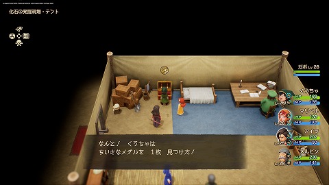 化石の発掘現場のテントの中の宝箱(まほうのカギ)から、ちいさなメダルが入手できます。宝箱を開けるには、まほうのカギが必要です。