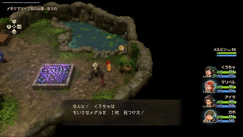 メモリアリーフ北の山道(過去)のほら穴のツボを壊すと、ちいさなメダルが入手できます。
