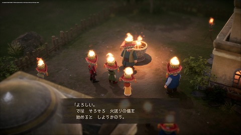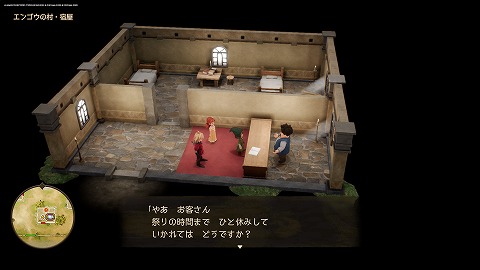 エンゴウの村(過去)の宿屋で休むと、ほむら祭りの時間になります。