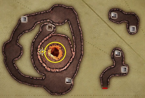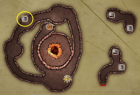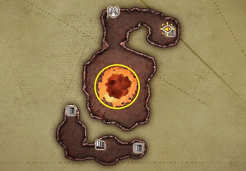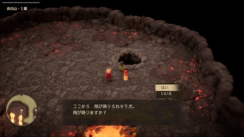 炎の山2層の西側中央に出てきました。火口を調べて1層に飛び降ります。