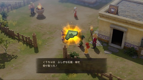 炎の山をクリアして、エンゴウの村(過去)の宿屋から出ると、パミラからふしぎな石板・緑がもらえました。