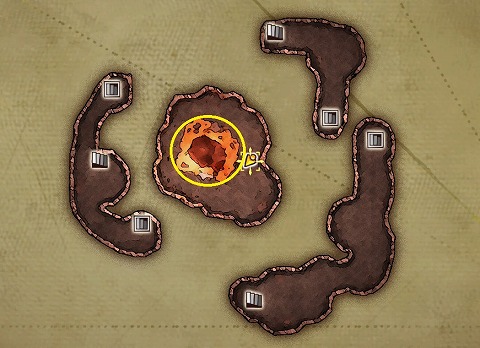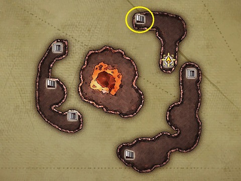炎の山1層の穴を調べて、飛び降りて地下に移動します。地下から頂上に戻ります。地下からの帰り道は、ほとんど1本道ですね。