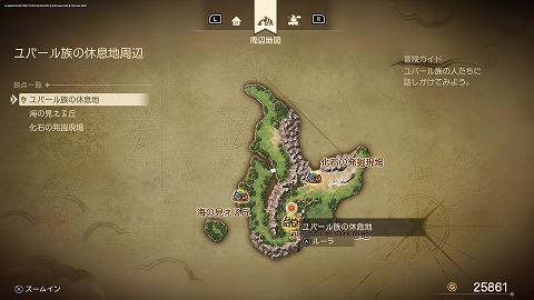 アイラの後を追って、海の見える丘(現代)に向かいます。ユバール族の休息地(現代)の南からフィールドに出て、北西に進むと海の見える丘(現代)に到着します。